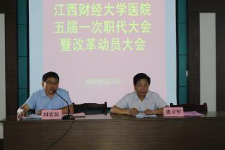 2018年6月15日,江西财经大学医院五届一次职代会暨改革动员大会在医院大会议室隆重召开,医院领导班子、中层干部及职工参加会议,会议由医院副院长,分工会主席田忠民主持。55名职工代表信心满满地步入会场,履行使命担当,共商改革大计。