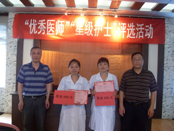 评选对象是直接为病人提供医疗、护理服务的临床一线的人员,由推荐和自荐的方式选出的优秀候选人。通过每位候选人在会上的述职及各位评委对候选人行为规范、工作质量、专业技能、劳动纪律、创新护理与科研等方面的评选,最终李霄霄、万辉霞同志荣获“优秀医师”称号,程幼瑜、熊薇同志荣获“二星级护士”称号。